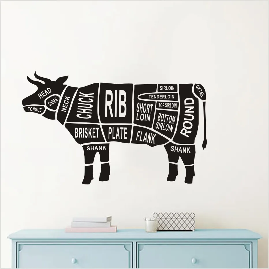 ORIGINAL Black Animals Cow Body Part Wall Stickers For Kitchen Restaurant Wall Decoration Laboratory Art Mur