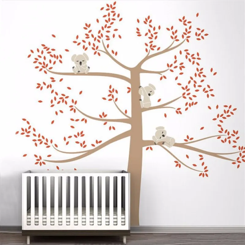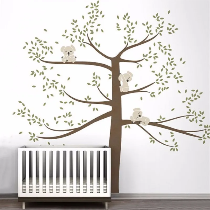 Spring Koala Tree Vinyl Wall Decal Removable Wall Sticker Tree Nursery Vinyls Baby Room Decor Wall