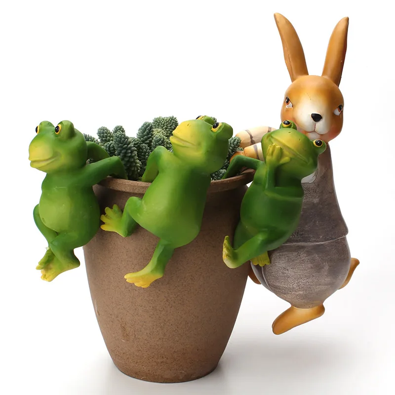 Creative Cute Climbing Rabbit Frogs Bonsai Decorative Ornament Hang Outdoor Garden Flowerpot Fence