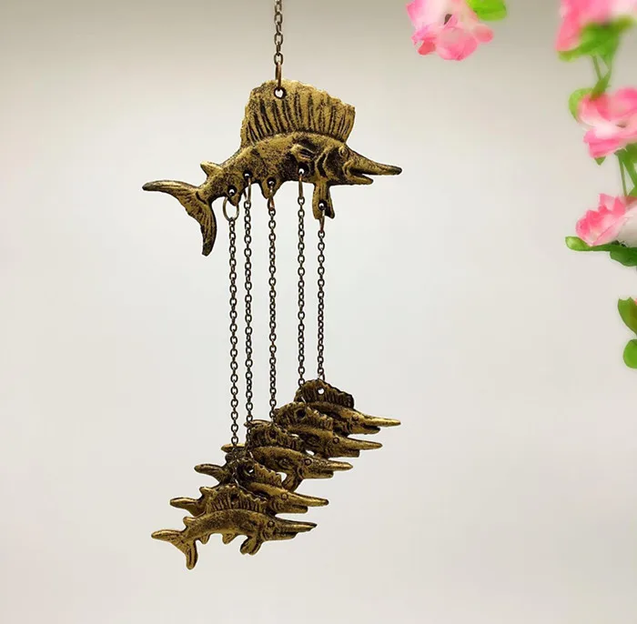 HOT SALE 2 Vintage Cast Iron Fish Wind Chimes Metal Hanging Windchimes Bell Home Garden Wall Porch Cabin Lod